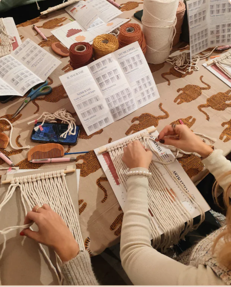 "Durante il workshop di macramè, ad un certo punto, quando stavamo prendendo la mano sulla tecnica da utilizzare, tra risate, battute e sorrisi, sembrava di stare dentro il film “Diamanti” di Ozpetek… se non l’avete visto, guardatelo! Un clima sereno, ironico e di vera collaborazione." DANIELA